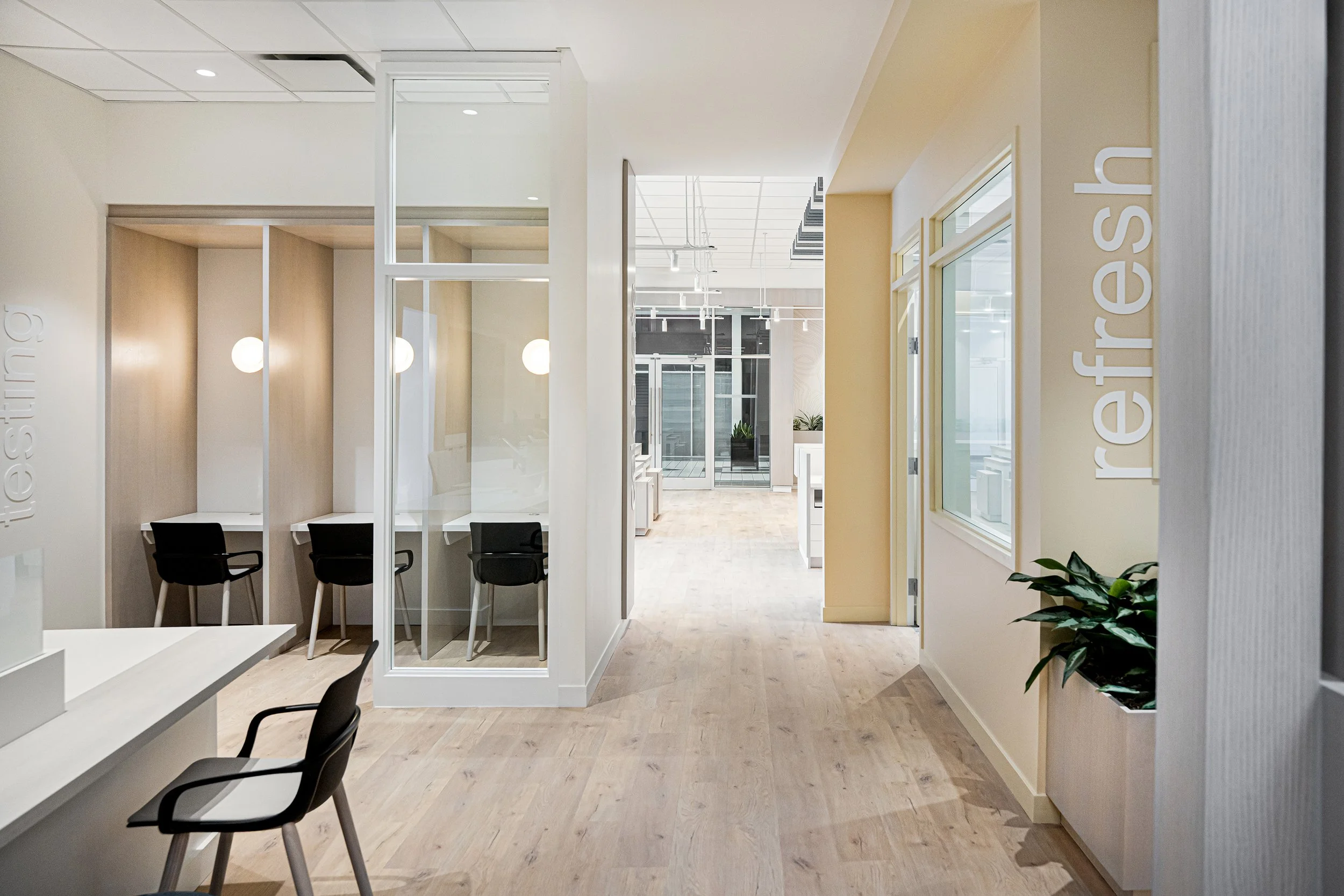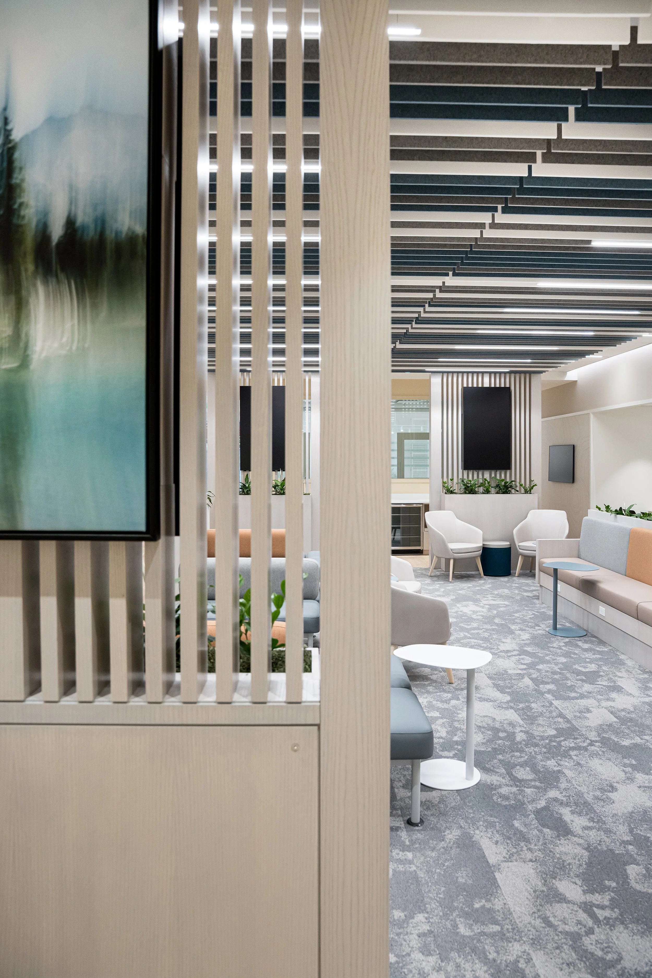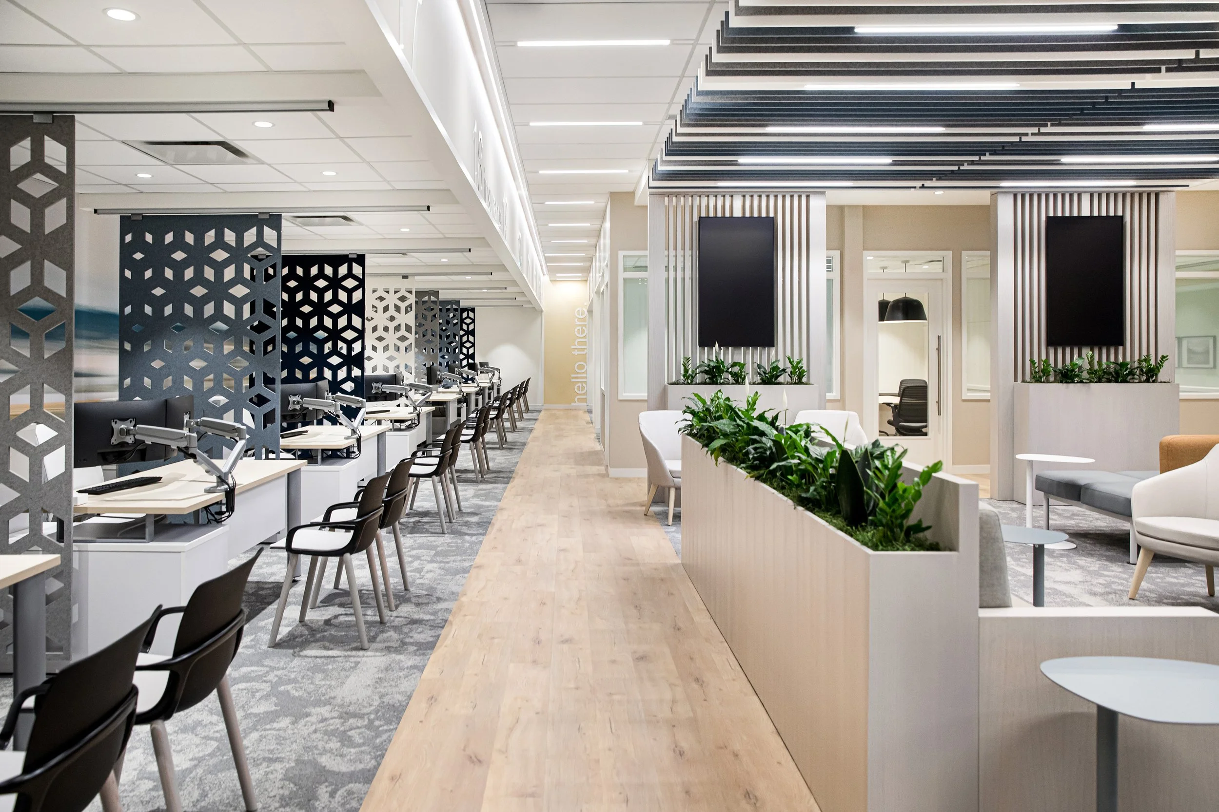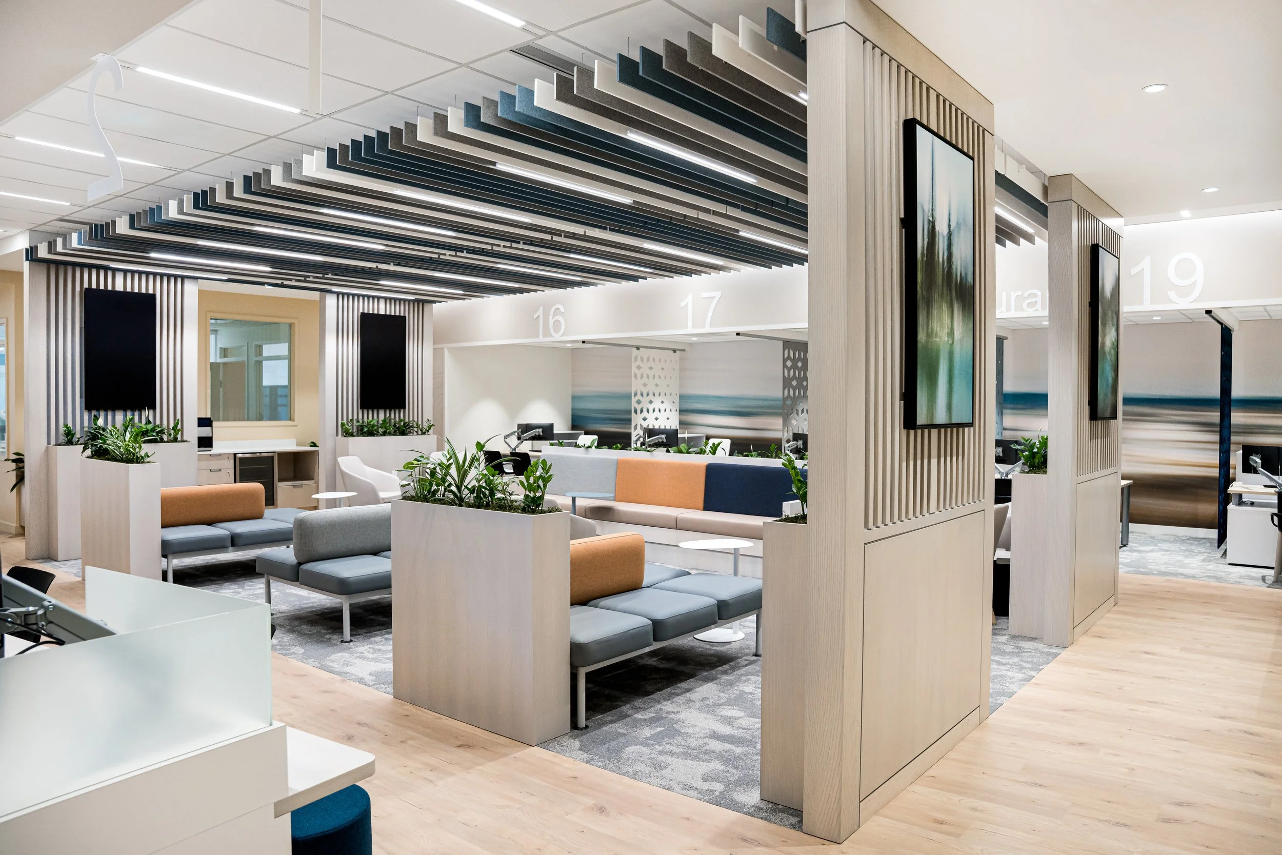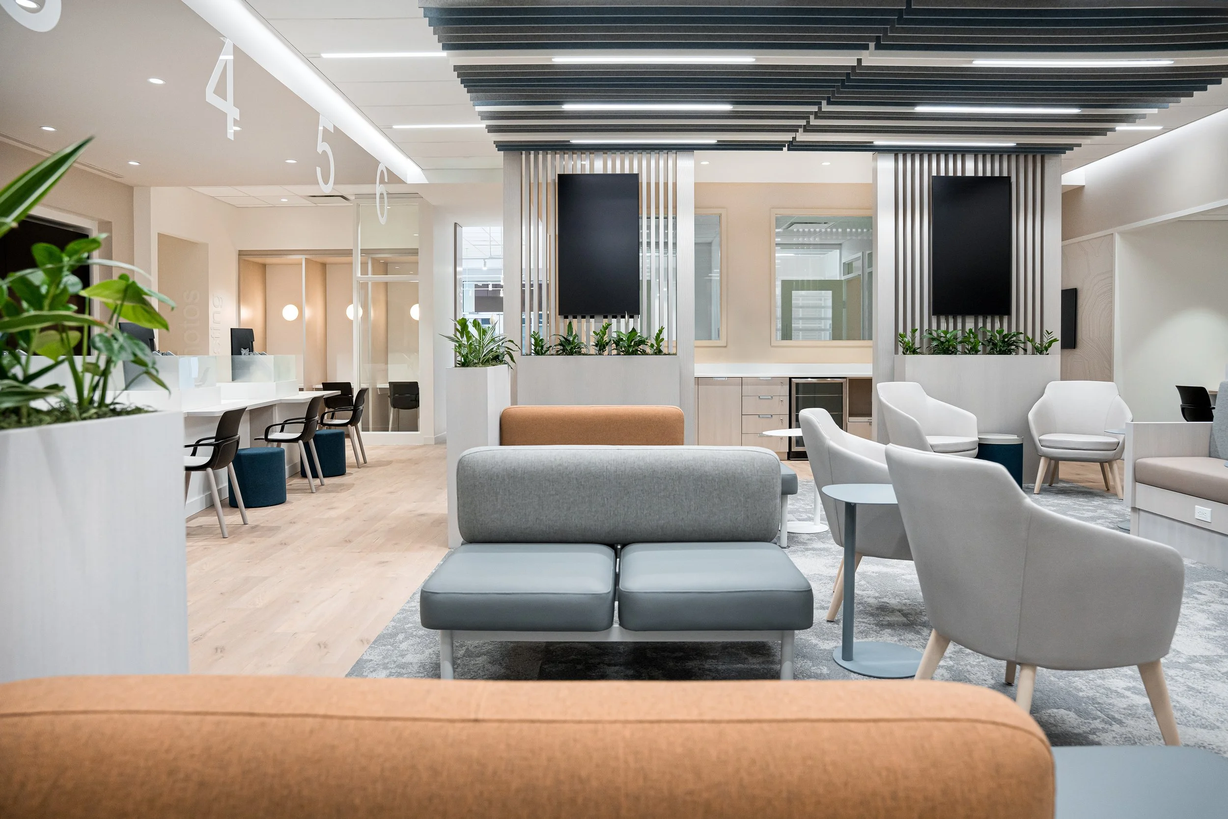 Tasked with reimagining both the physical space and the customer experience, we transformed AMA’s flagship location into a modern, member-focused environment rooted in connection, comfort, and efficiency. The design replaced traditional queues with fluid service zones, introduced community lounges and breakout areas, and created flexible layouts that encourage interaction. Drawing inspiration from the prairie landscape, a refined palette, custom graphics, and biophilic elements establish warmth and regional identity. The result is a welcoming, future-forward space that streamlines operations, enhances brand perception, and reshapes how members engage with the organization.