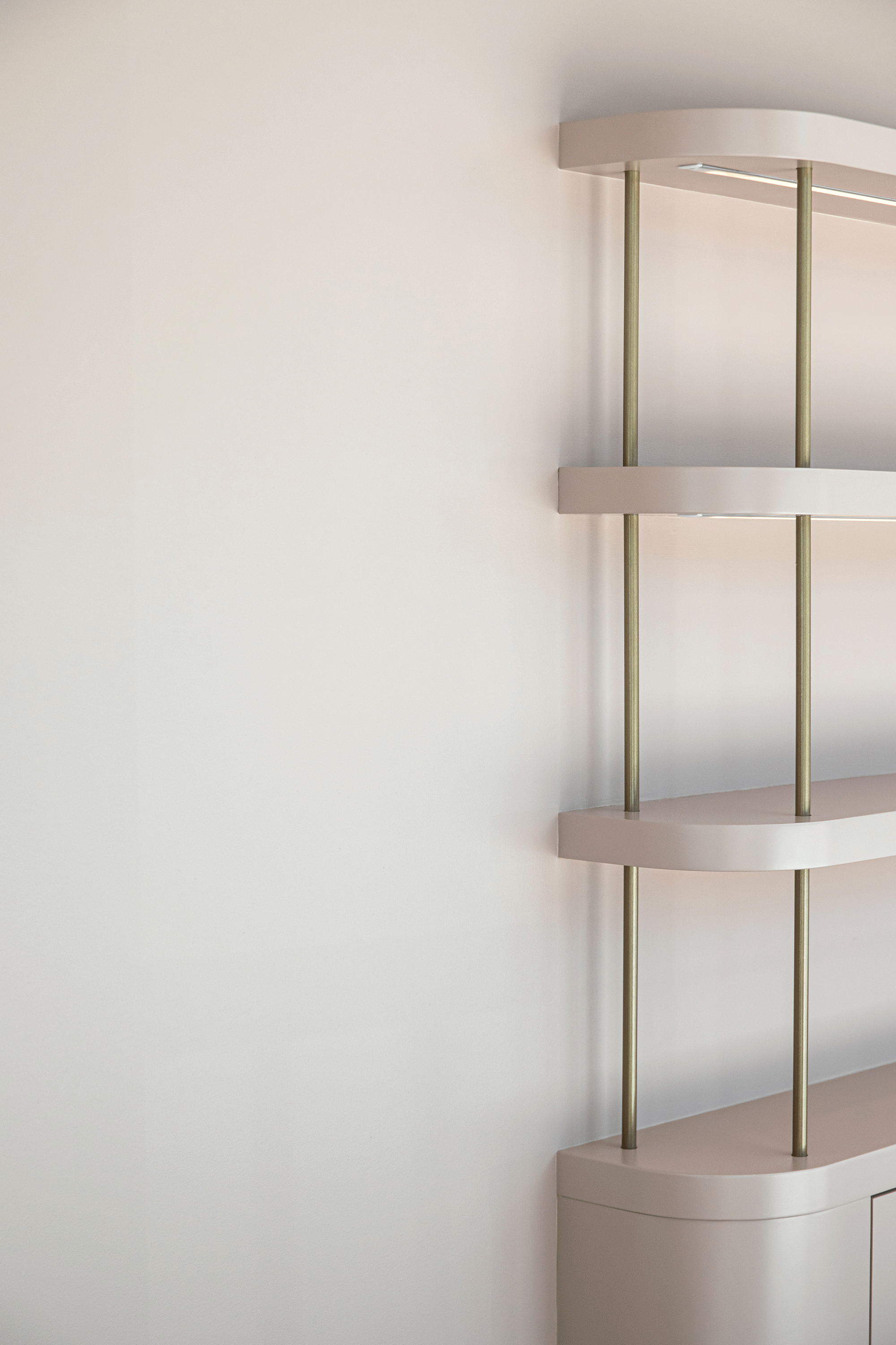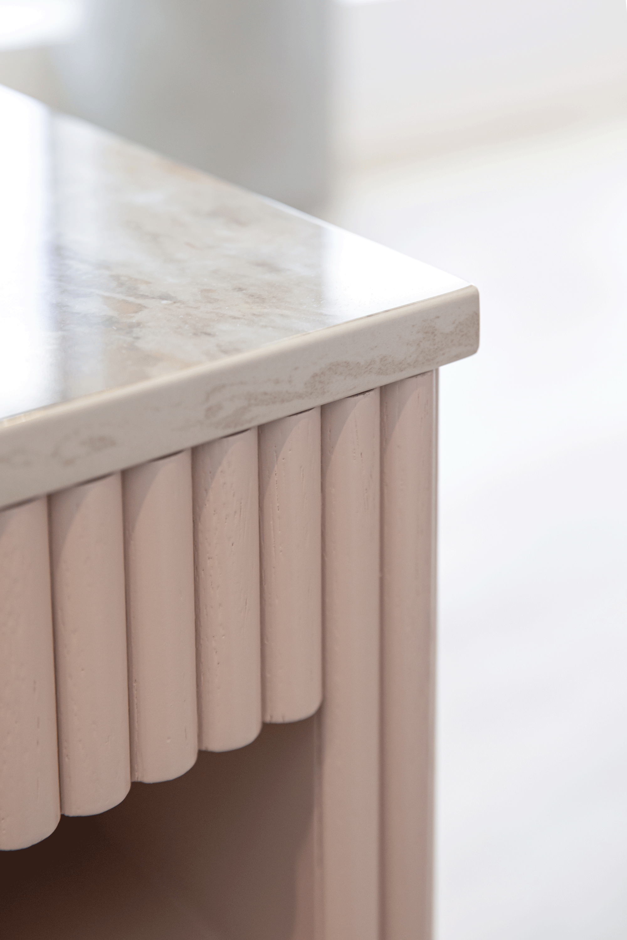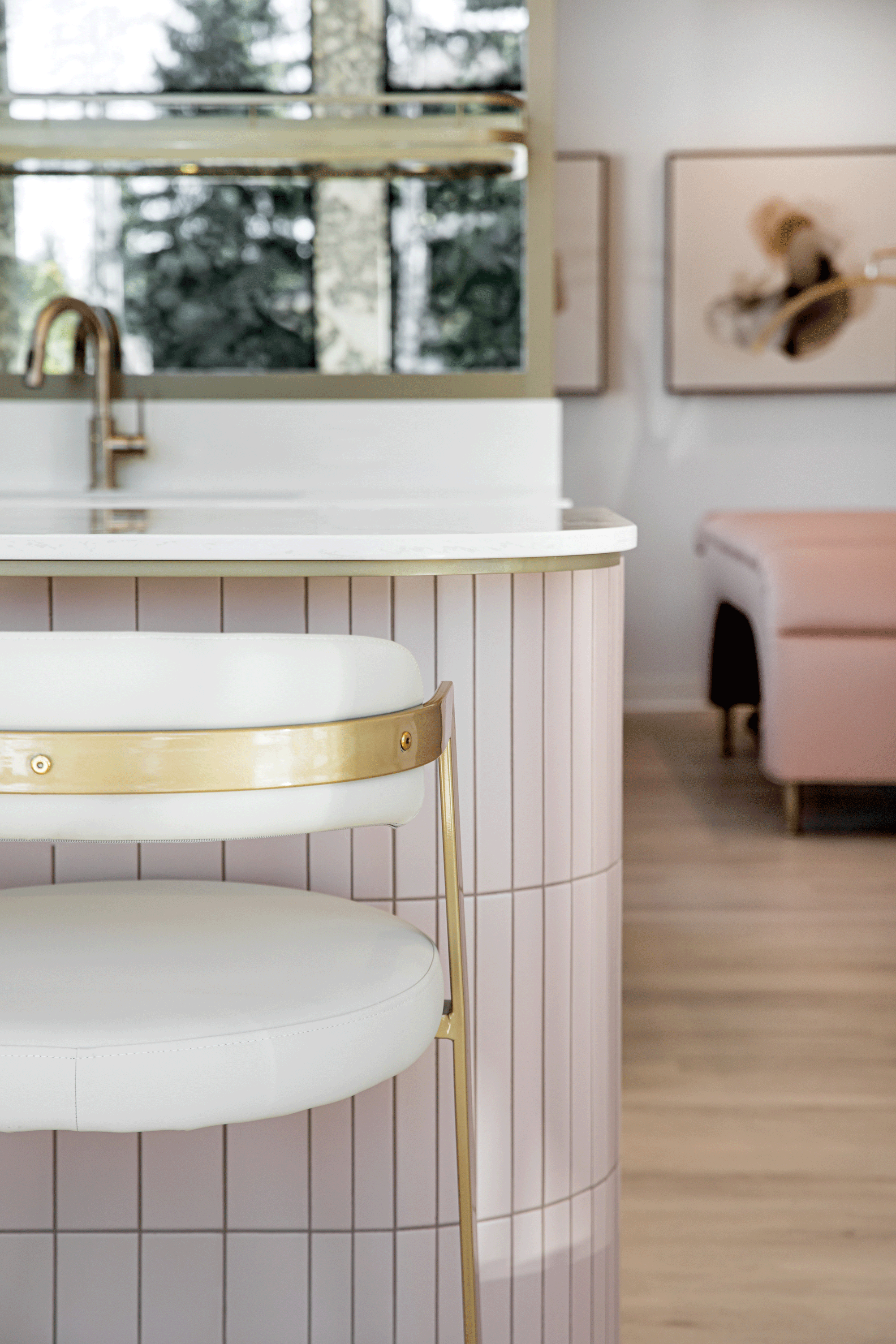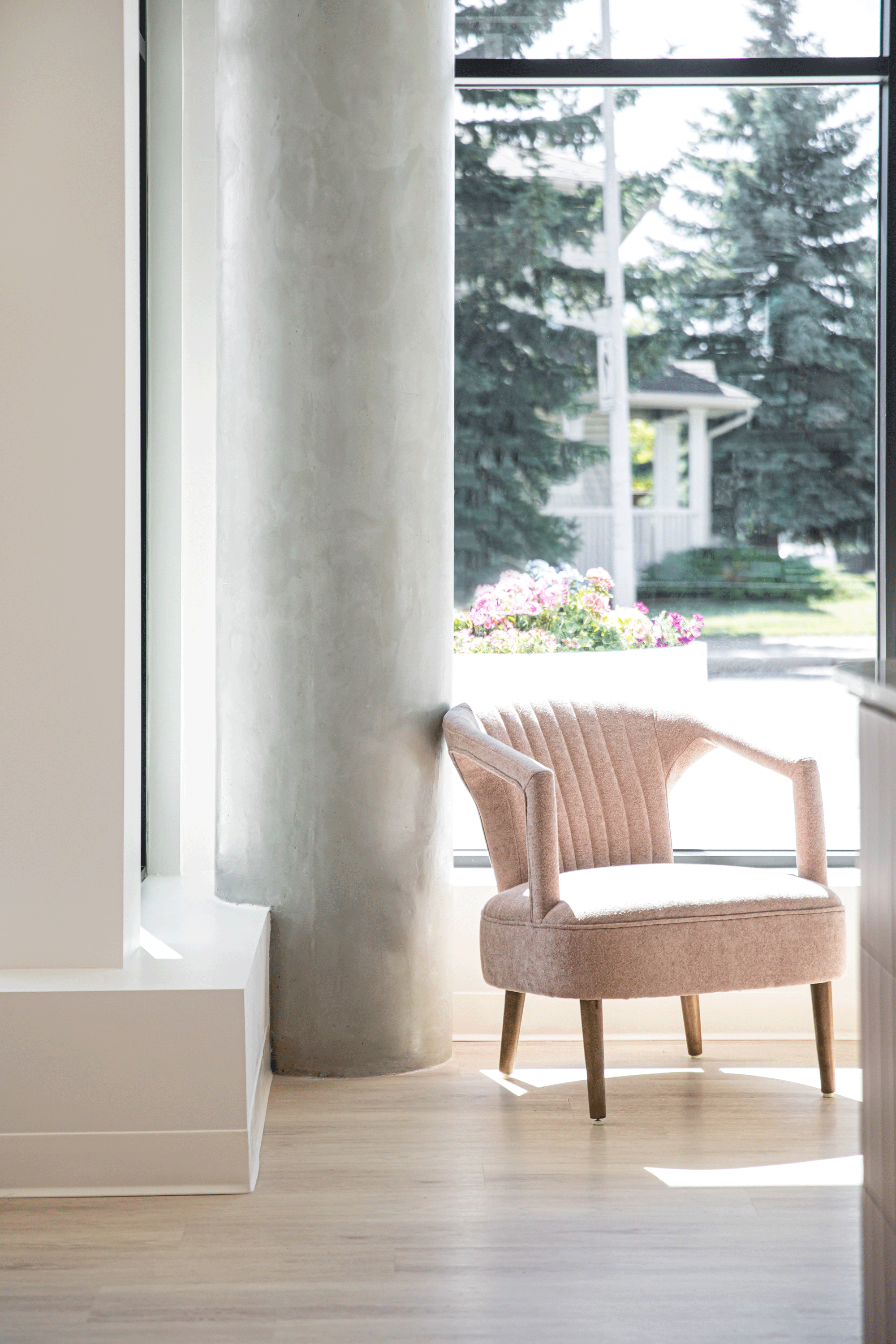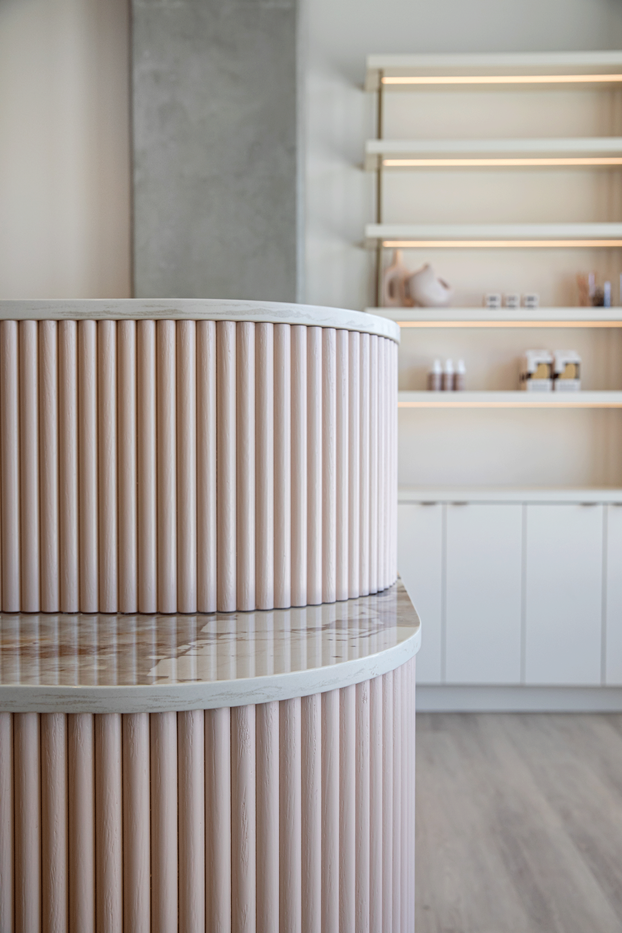 A soft, feminine palette of blush tones and warm neutrals is layered against exposed concrete and industrial elements, creating a space that feels both elevated and grounded. The result is a welcoming, modern environment that reflects LOLA’s commitment to safety, professionalism, and confidence-building beauty experiences, while celebrating the spirit of a proudly female-owned brand.