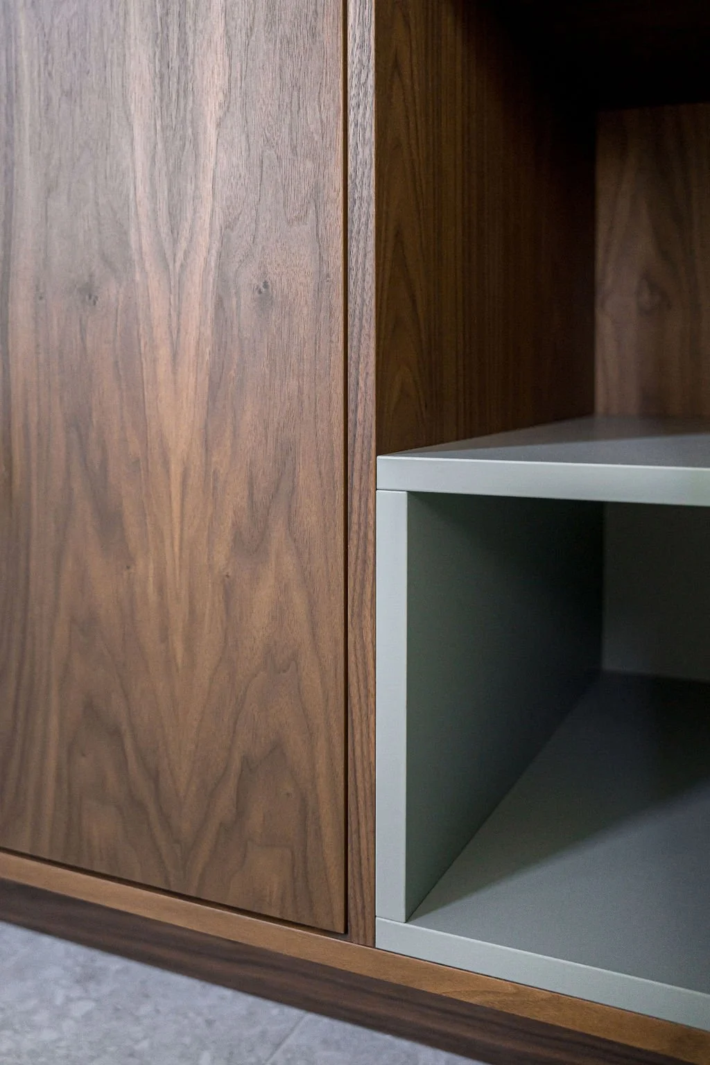 Following a devastating fire that left only the original 1980 foundation intact, our clients engaged us to design both the architecture and interiors of their new home. The challenge: expand the footprint and ceiling heights while working within the constraints of the existing structure. By cantilevering the main and second floors and increasing the foundation height, we created a more generous, light-filled home without sacrificing structural integrity.